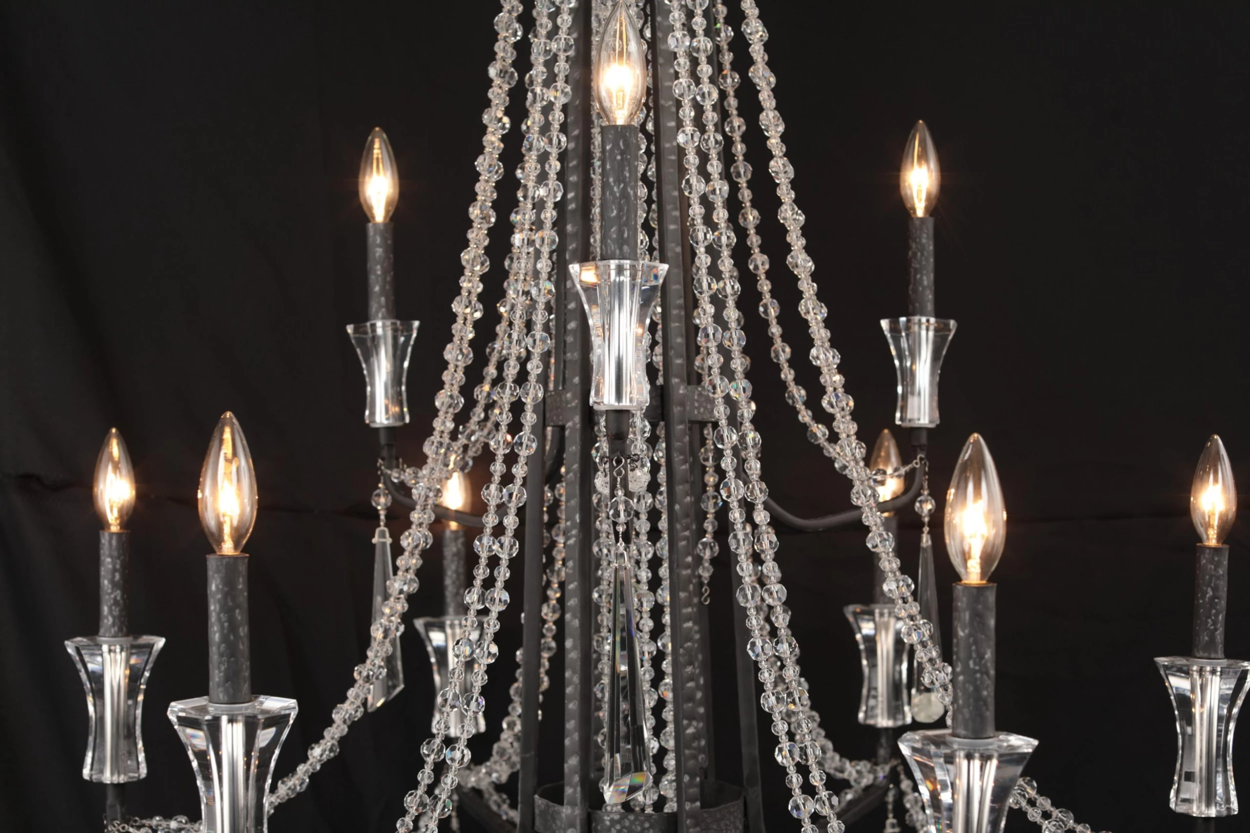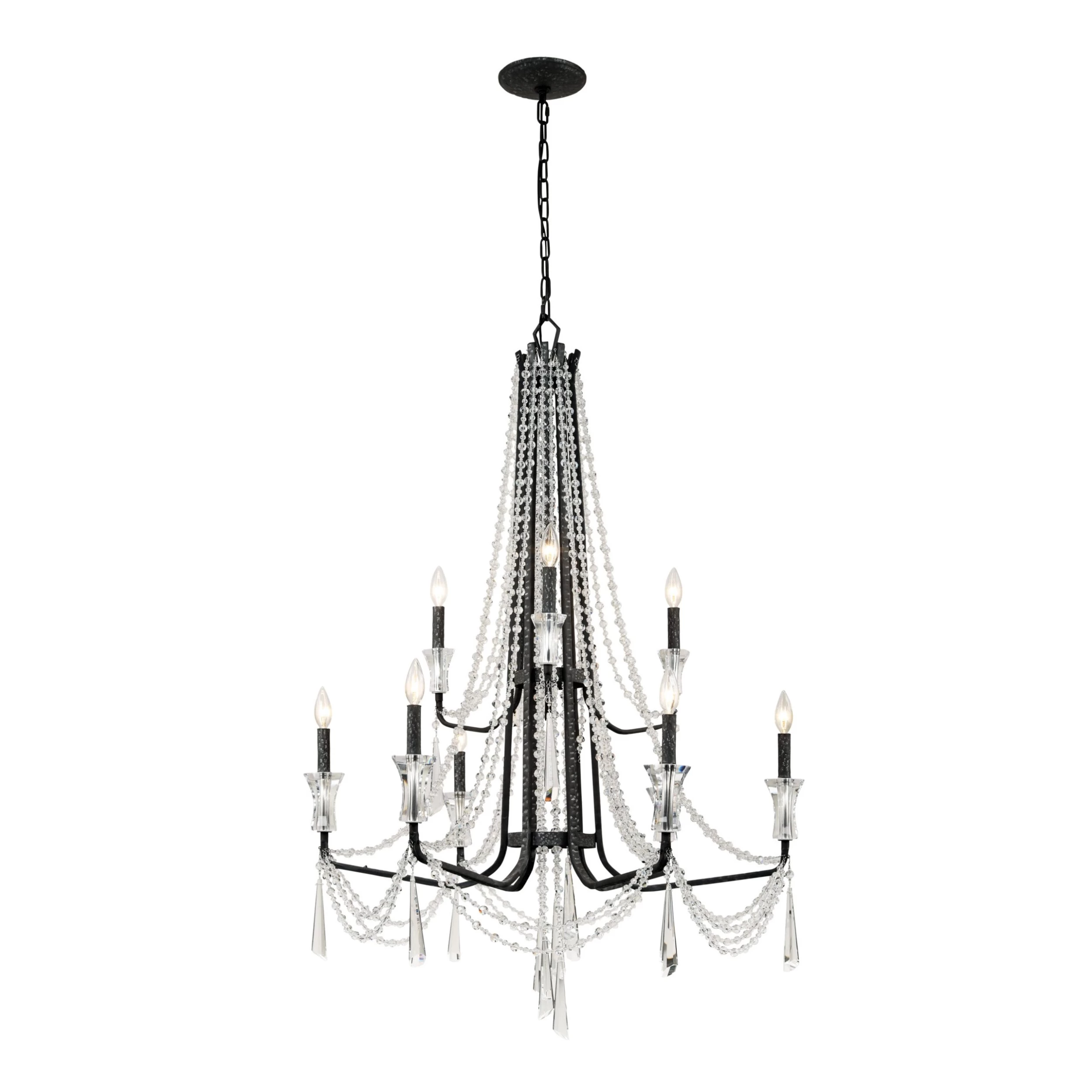Heirloom-Quality Optic Crystal. Comes Fully Assembled. Handsomely Hammered Metal Accents. Hand Forged Recycled Steel.