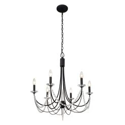 Inspired by an old Williamsburg chandelier. Brentwood is finished in French Gold and Carbon Black. Draped in bohemian crystals and dressed in K9 crystals spears and bebeches.