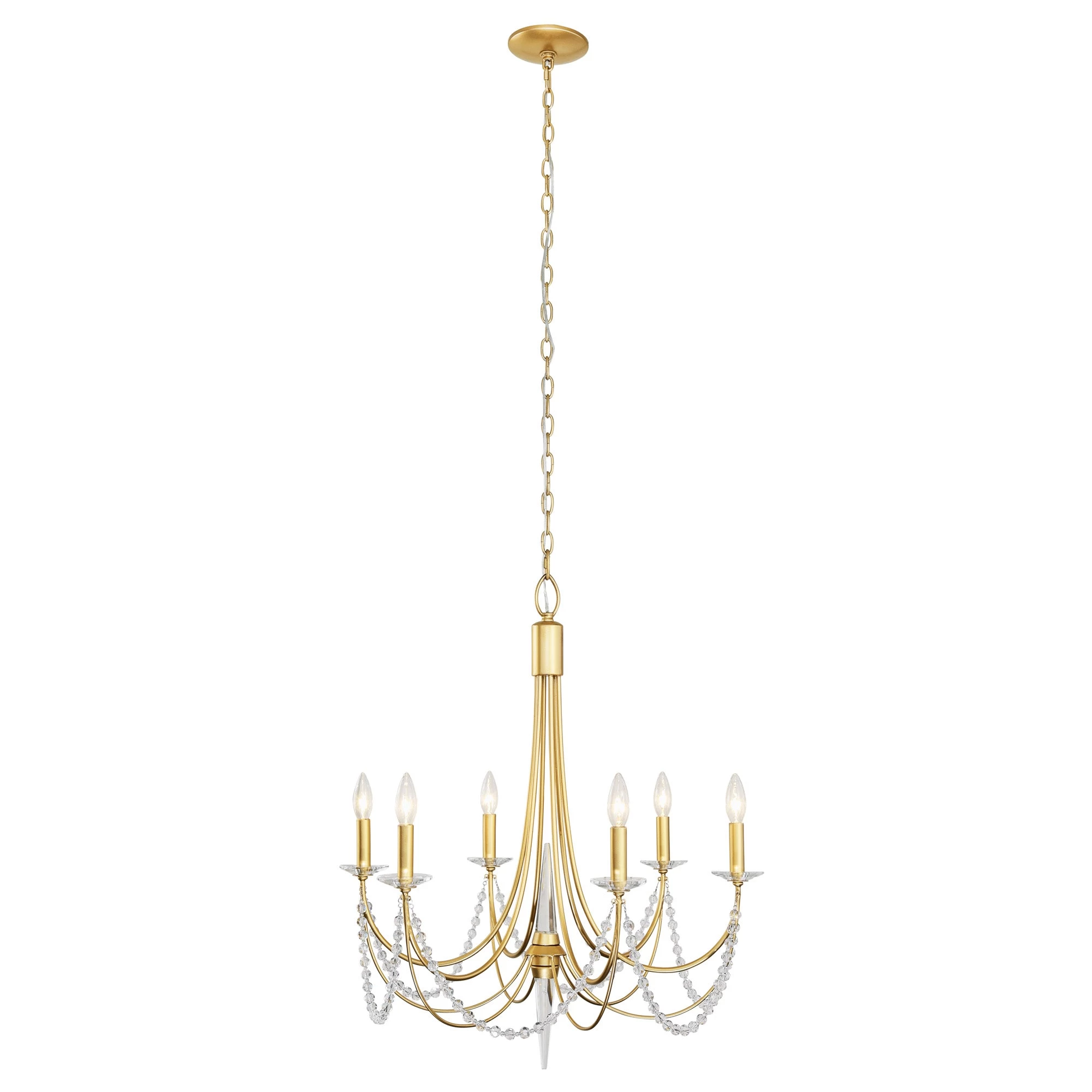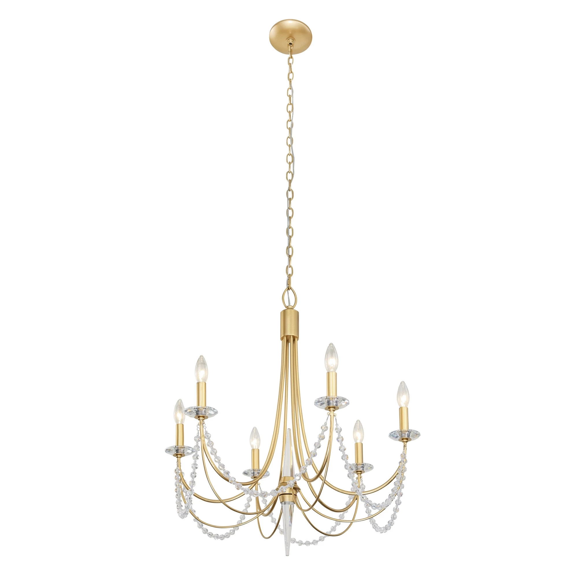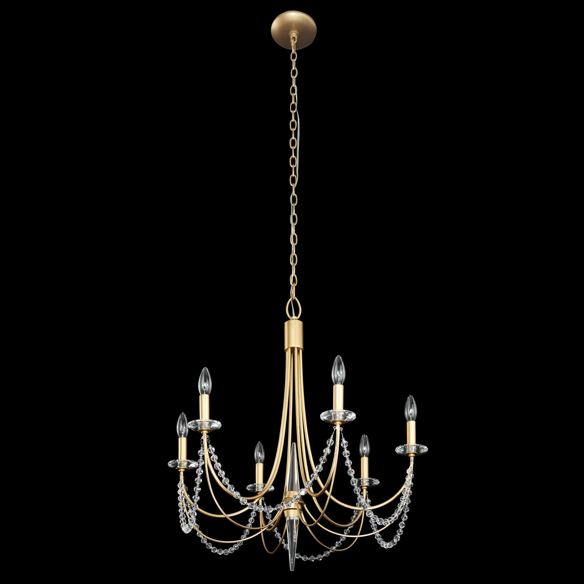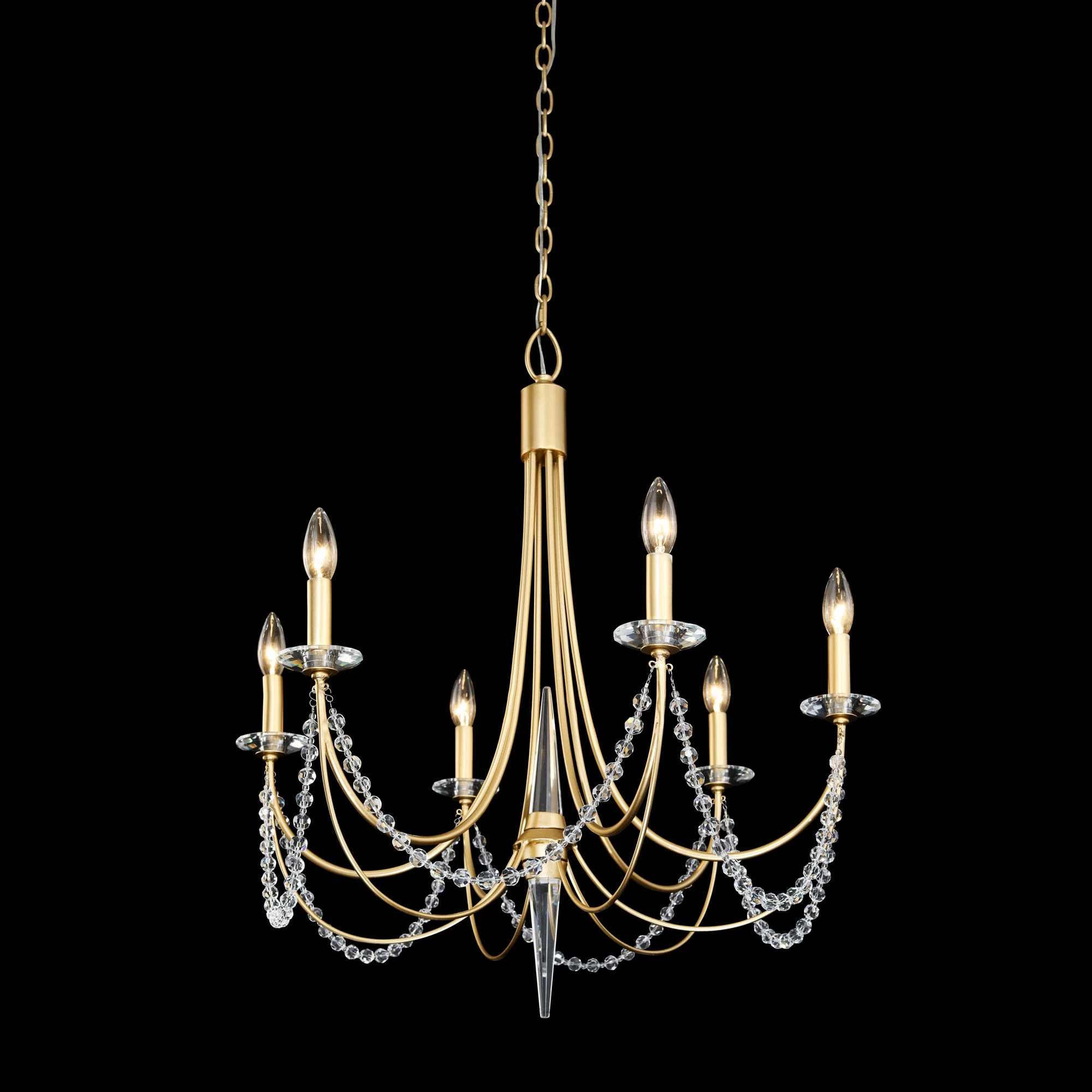Inspired by an old Williamsburg chandelier. Brentwood is finished in French Gold and Carbon Black. Draped in bohemian crystals and dressed in K9 crystals spears and bebeches.