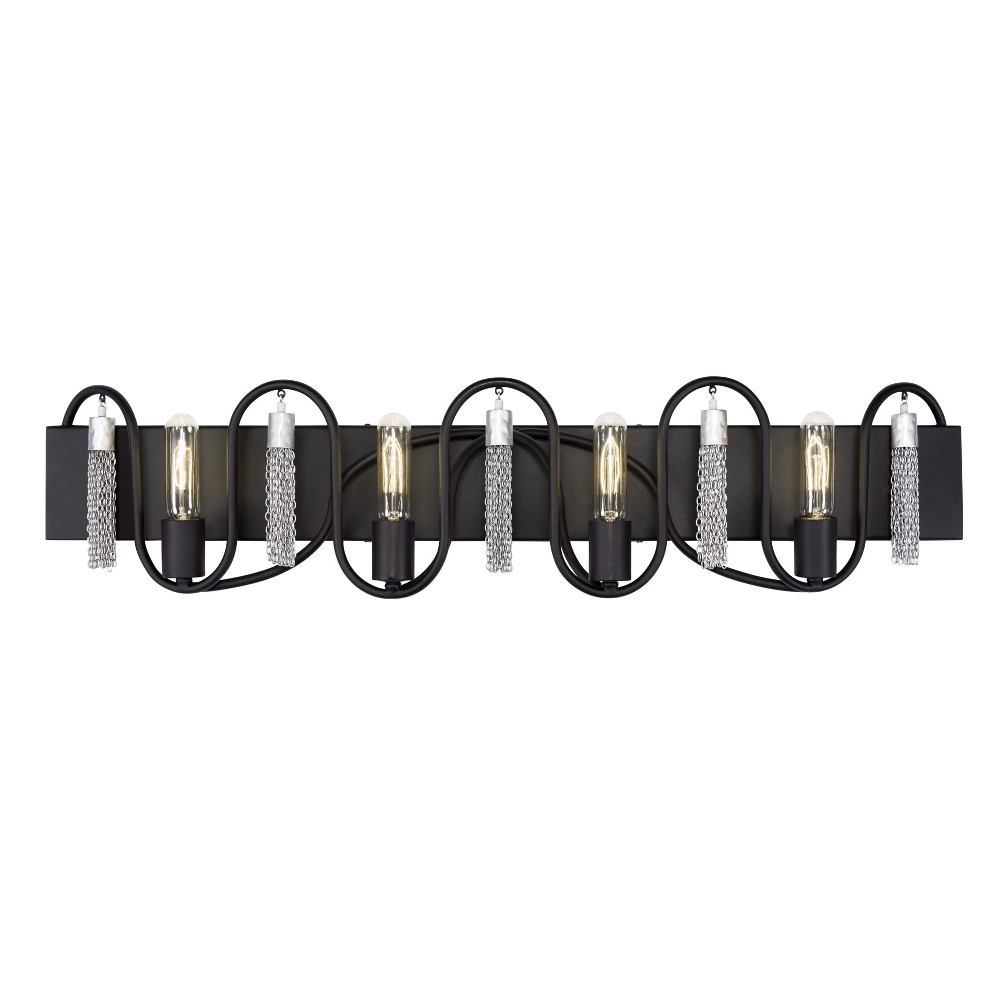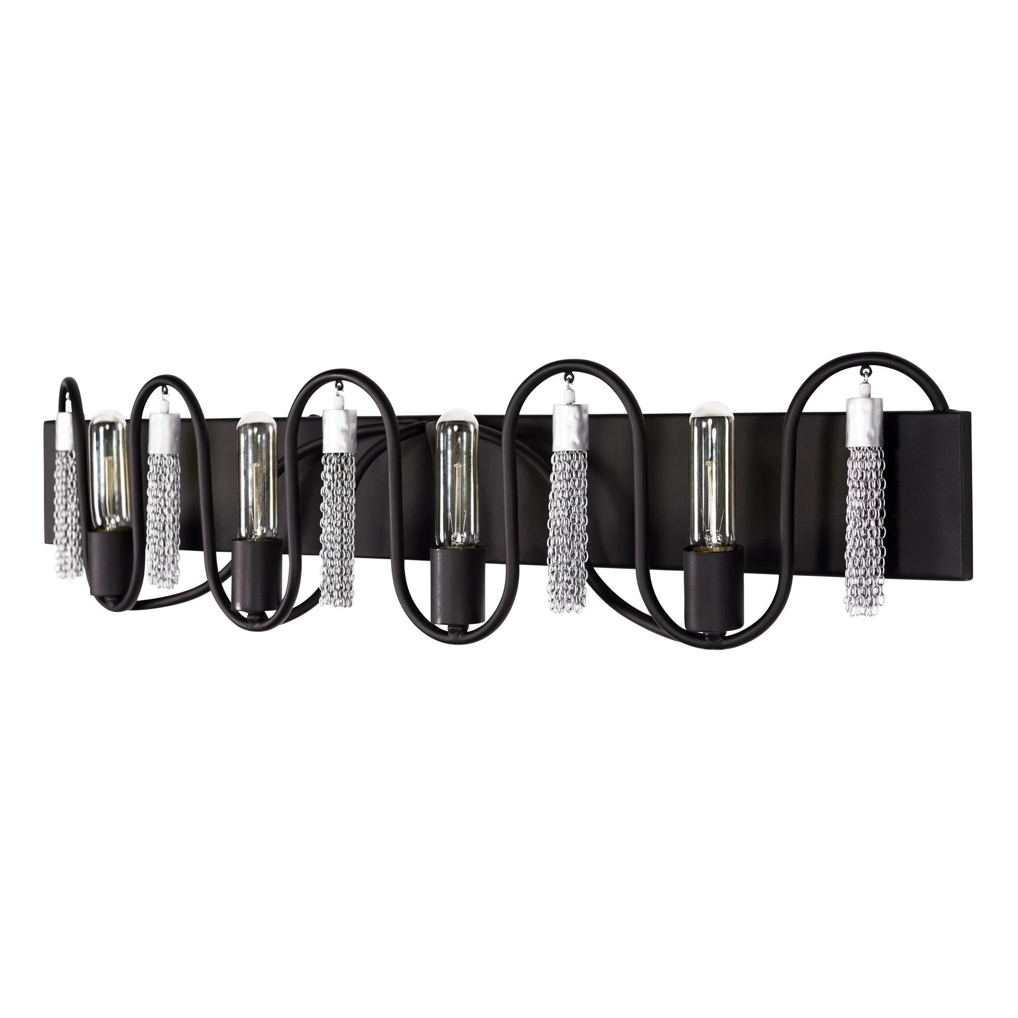The fluid grace of the Darden Collection conveys a bold, yet tempered strength as the eye follows the parabolic connections between Edison bulb stalagmites and hand-made jewelry chain stalactites. Hints of classic Greek design are apparent in its footprint while gold or silver accents evoke a bohemian warmth. The eye is intrigued, searching for a beginning or an end. The result – mesmerizing beauty.