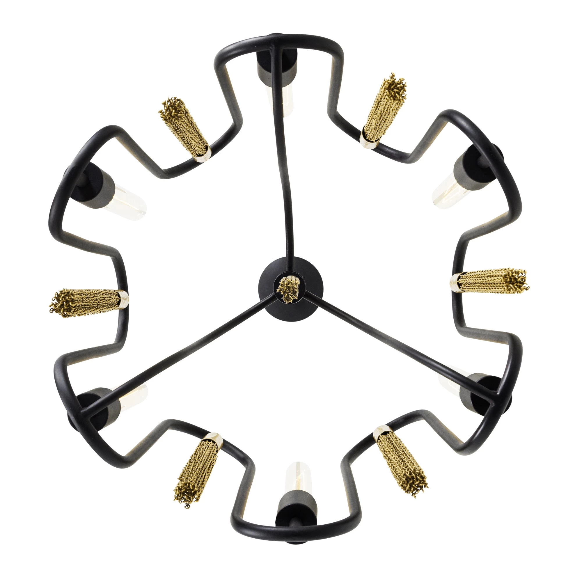 The fluid grace of the Darden Collection conveys a bold, yet tempered strength as the eye follows the parabolic connections between Edison bulb stalagmites and hand-made jewelry chain stalactites. Hints of classic Greek design are apparent in its footprint while gold or silver accents evoke a bohemian warmth. The eye is intrigued, searching for a beginning or an end. The result – mesmerizing beauty.