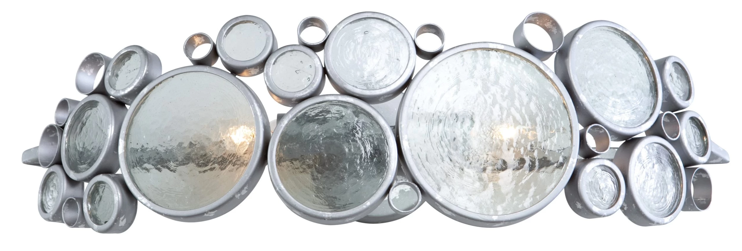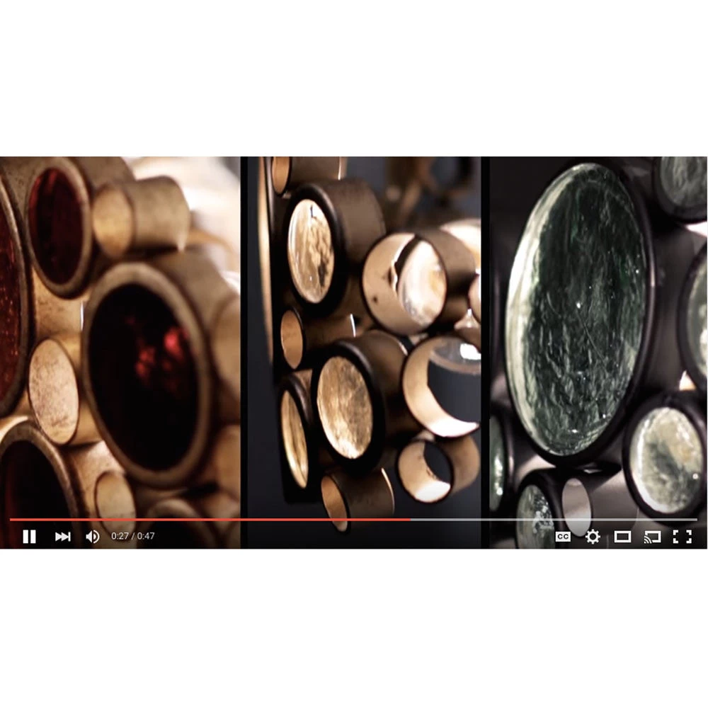 Breathtaking…that’s what came to mind when we saw the ruins of an old Nevada mine at sunset. The walls had been constructed of wine bottles and mud. All those old bottles arranged so perfectly and capturing the sunlight, what better inspiration for a lighting family? We mimicked the bottle ends with recycled steel circles of varying sizes filled with recycled glass discs. Rarely before has a design based in “old” seemed so powerfully new.