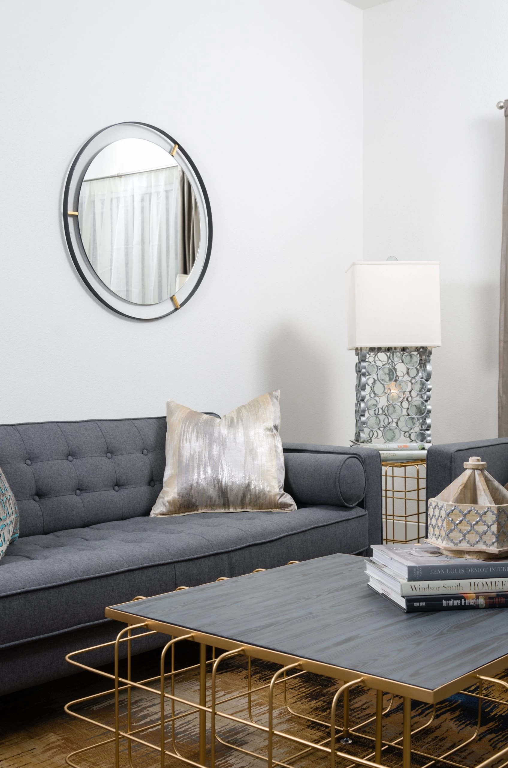Industrial revolution. With antique gold supports, this mirror appears to float on your wall. The outer frame is matte black iron for an industrial feel. You may mount Framed mirrors vertically or horizontally.