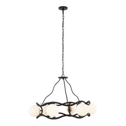 Hand Forged Recycled Steel. Handsomely Hammered Elements. Fluted 70’S Inspired Clear Glass Rods.