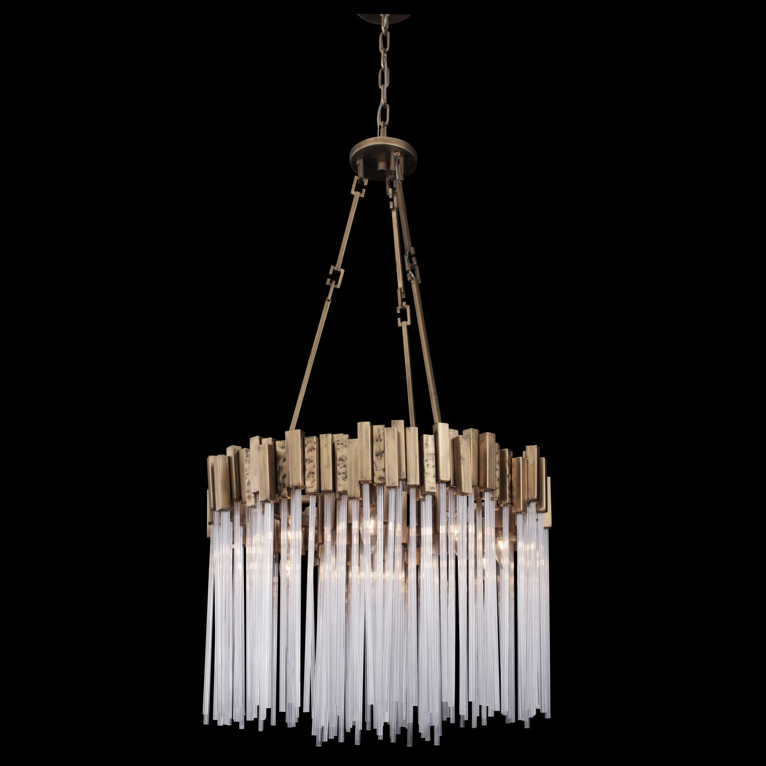 Hand Forged Recycled Steel. Handsomely Hammered Elements. Fluted 70’S Inspired Clear Glass Rods.