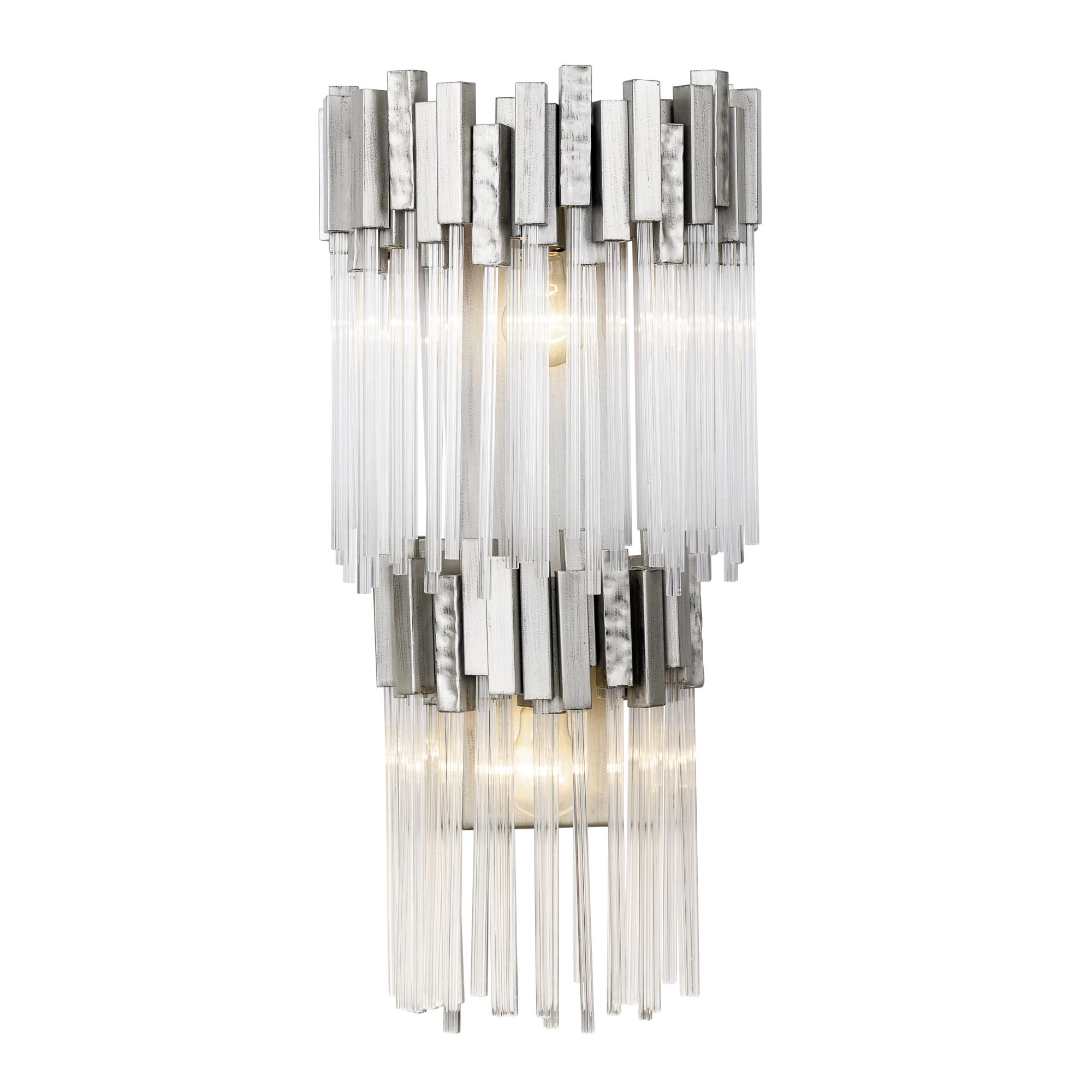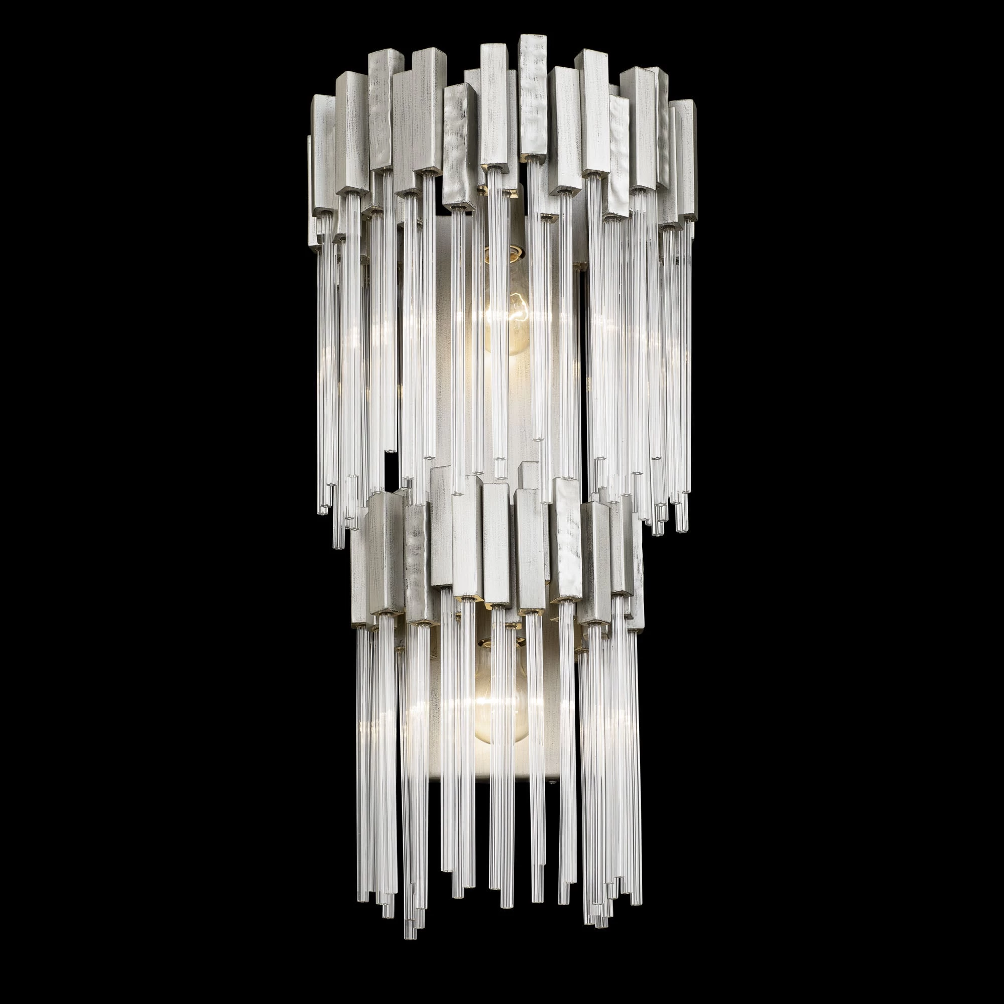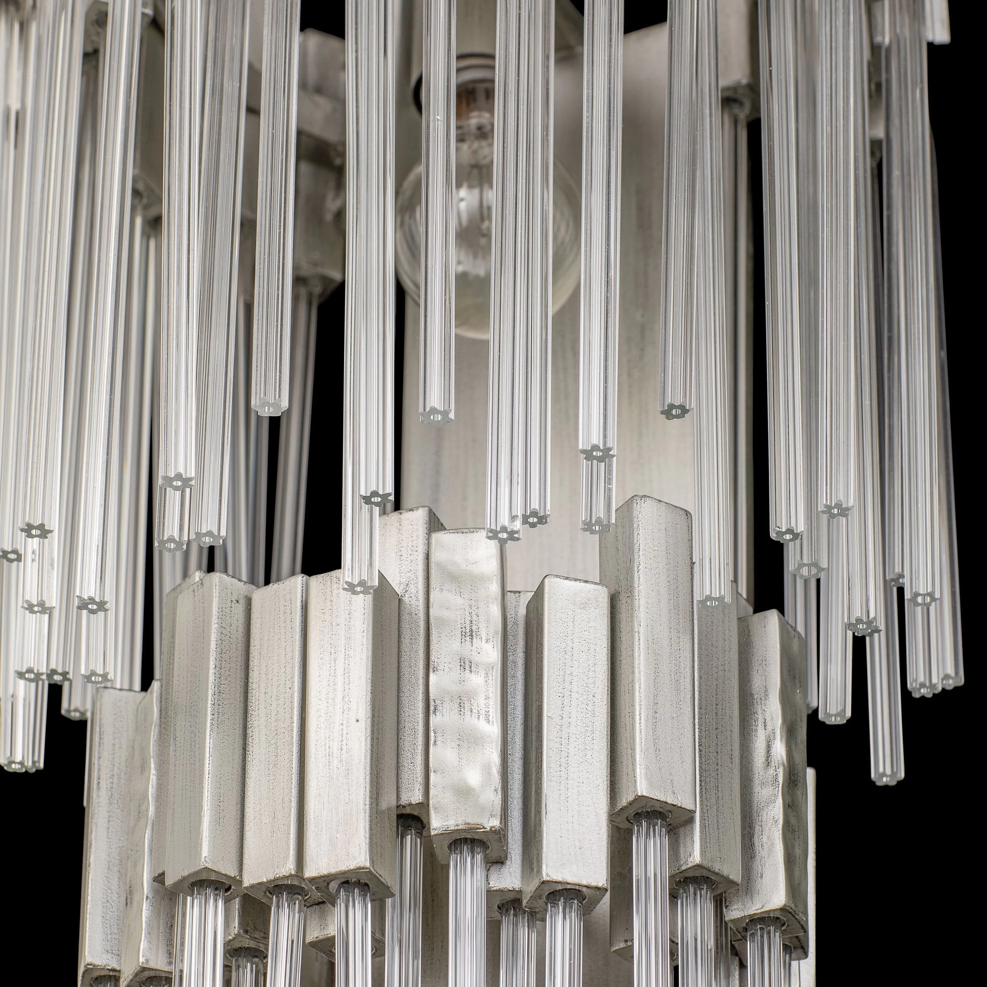 Hand Forged Recycled Steel. Handsomely Hammered Elements. Fluted 70’S Inspired Clear Glass Rods.
