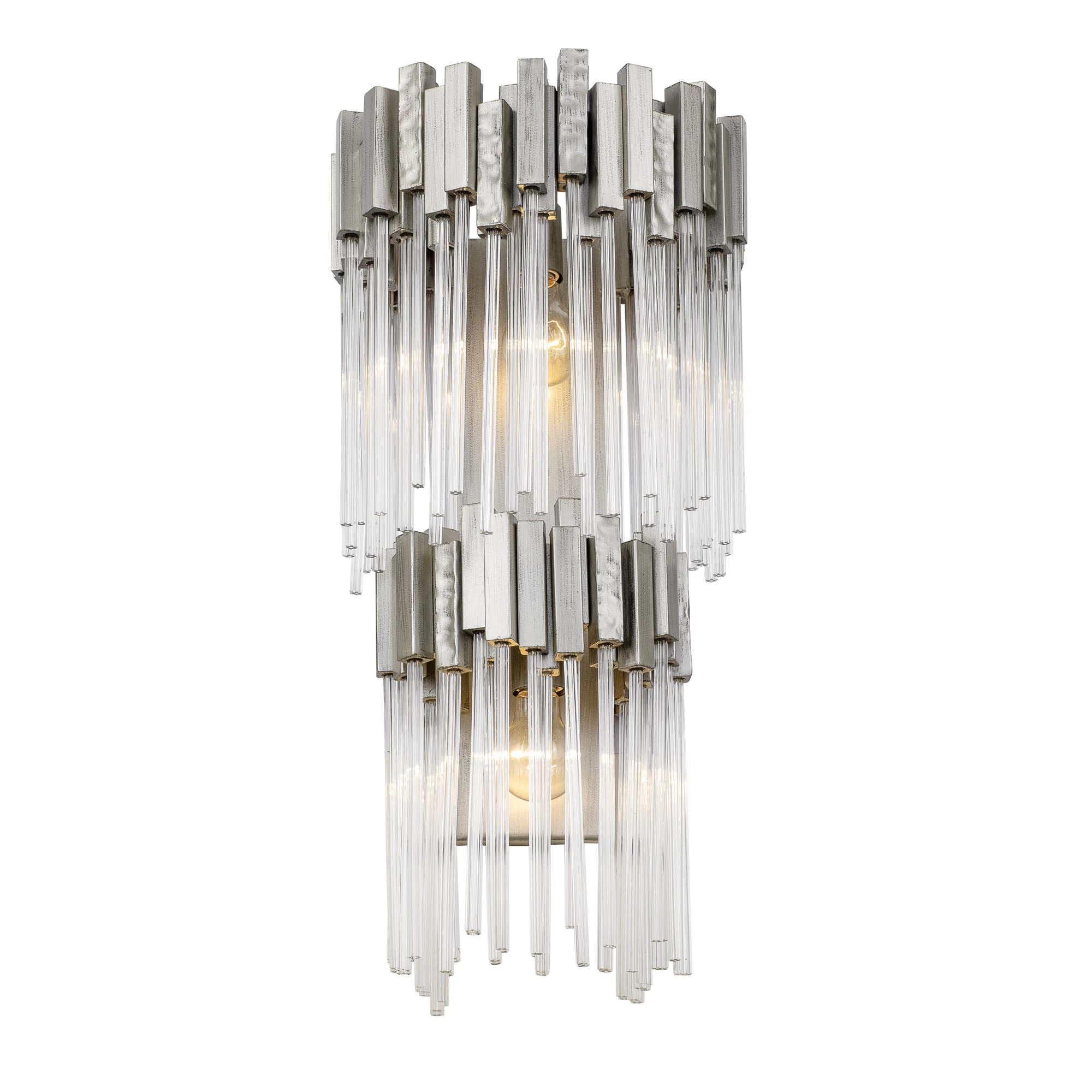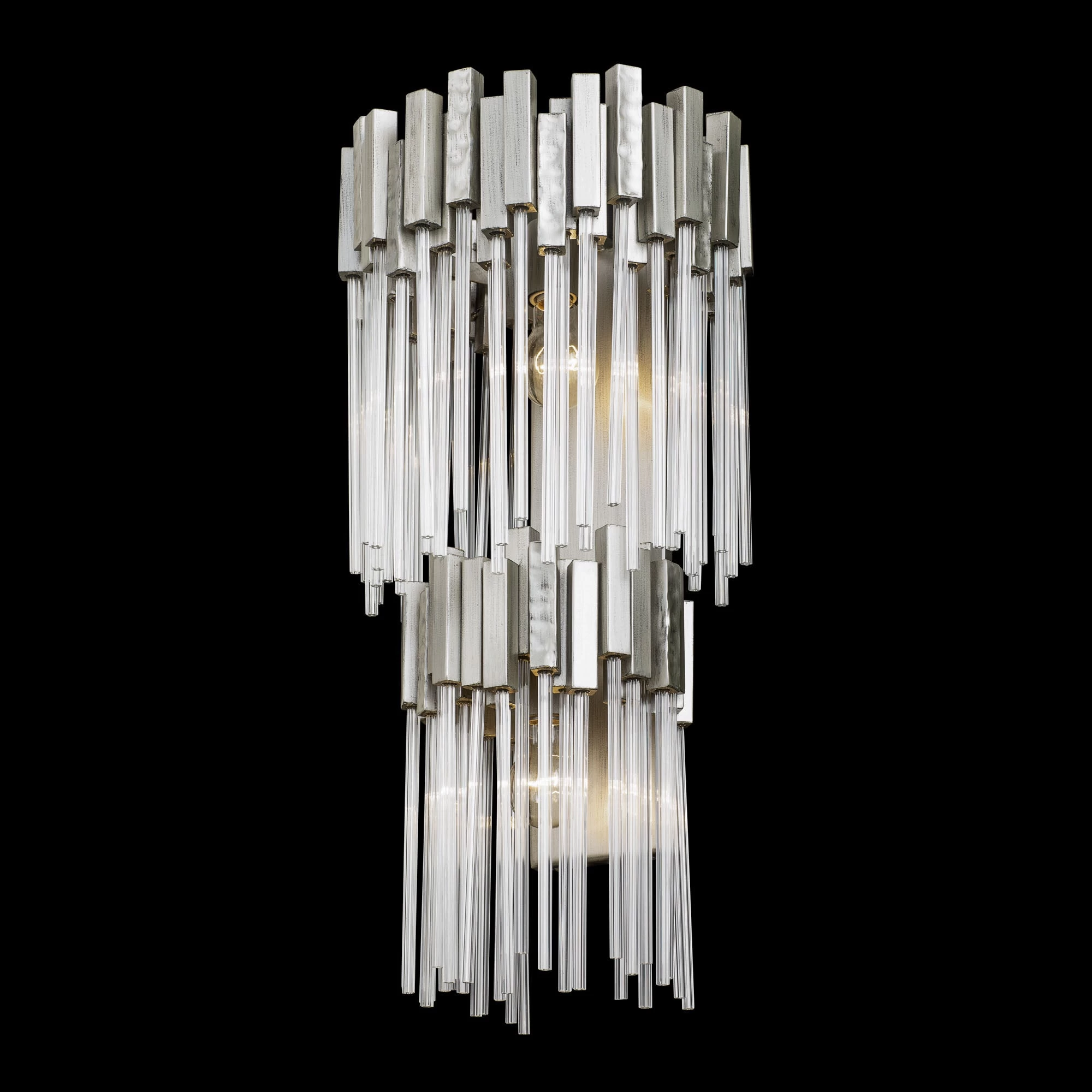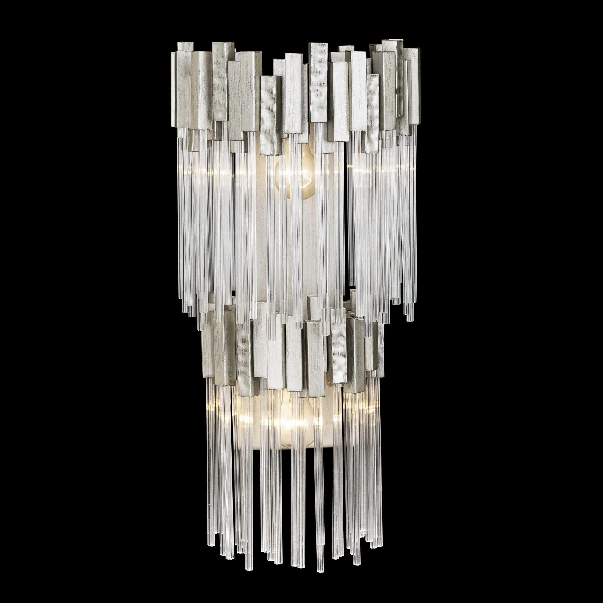 Hand Forged Recycled Steel. Handsomely Hammered Elements. Fluted 70’S Inspired Clear Glass Rods.