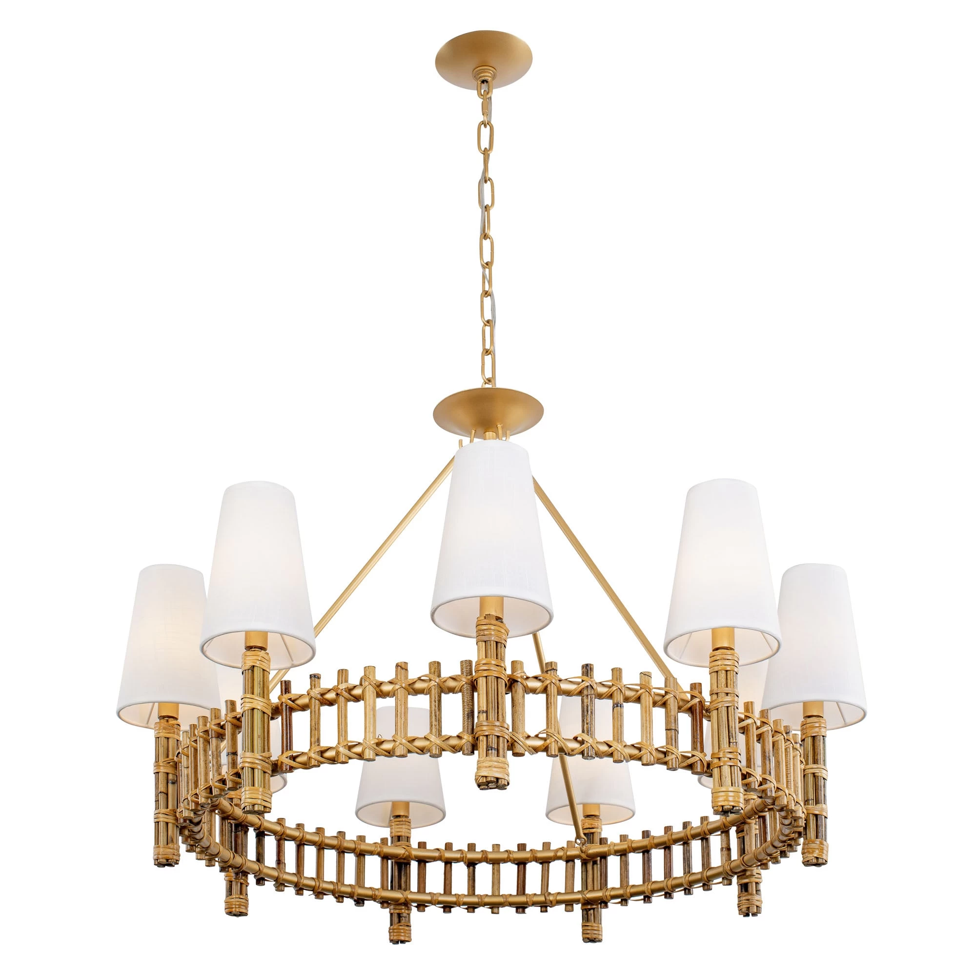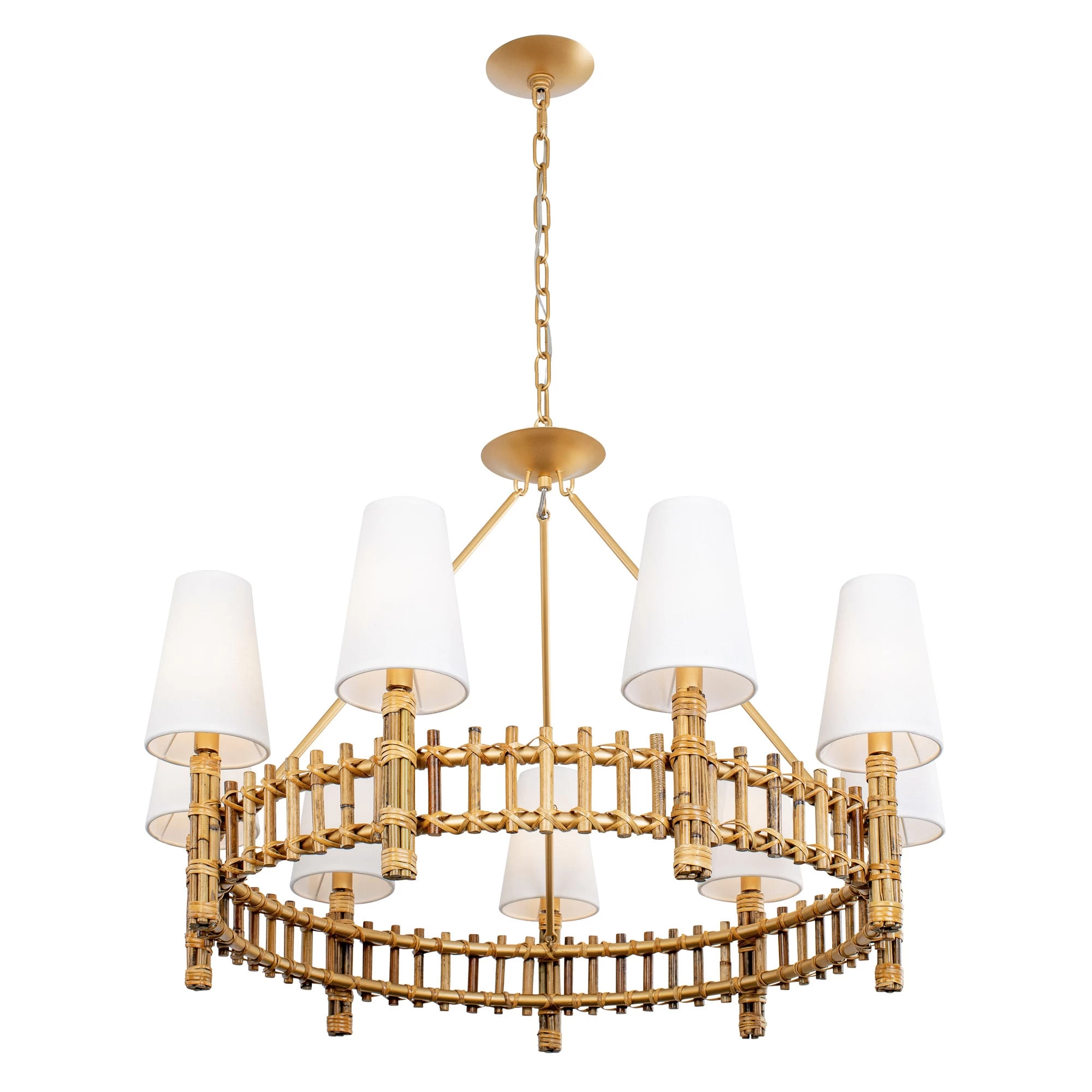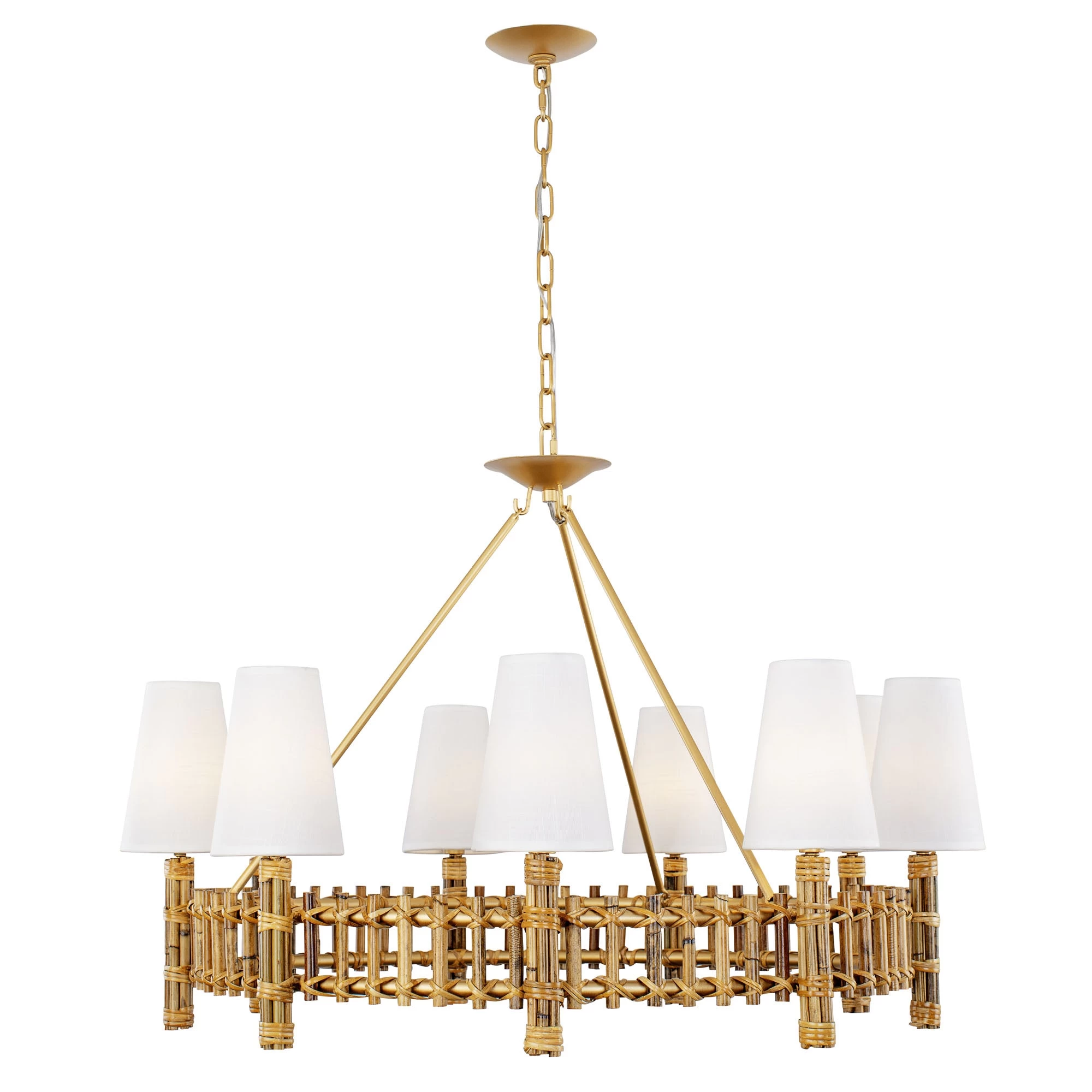 An island in the West Indies, Nevis, derives its name from Spanish meaning, “Our Lady of the Snows.” It is a reference to the story of a 4th-century Catholic miracle: a snowfall on the Esquiline Hill in Rome. The image of a miraculous snow-covered peak rising from a hot climate, is the design inspiration behind Nevis by Varaluz. This dichotomy is echoed by pairing white peaked linen shades with natural and sustainable rattan that emulates tropical bamboo, for a modern take on tropical inspired lighting.