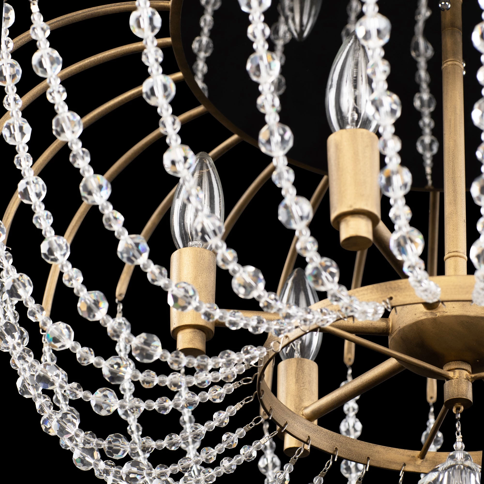 Parasol frames meet their crystal crush in this new Pendant Light collection. Umbrella frames, carnival rides and birdcages clearly present in the design. But Continuing the frame lines with crystal is an unusal twist. Glam, coastal and cottage all coalesce together into one pretty, shimmery and airy Pendant Light.