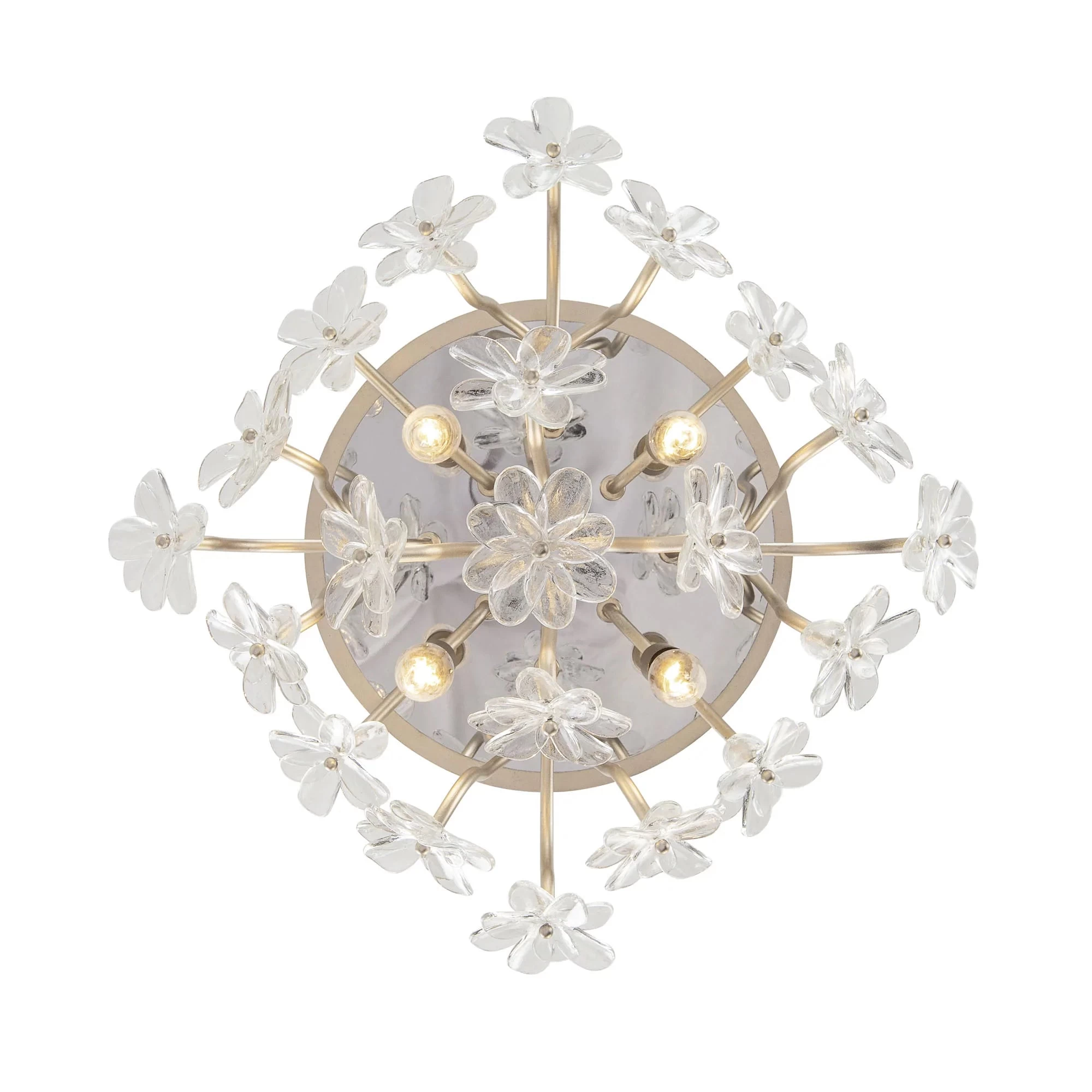 When you first see it aglow with its fine intricacies, it may not show, but the Wildflower collection started its path to existence thanks to Mary V. Walcott’s Oconee-Bells discovered in the Smithsonian Libraries and Archives Special Collections. Taking center stage is a touch of Danish modern on top of midcentury. Wildflower combines delicate, handmade ice glass flower petals, with equally delicate wispy hand-forged and recycled steel tubing and metal work. Available in gold or black.