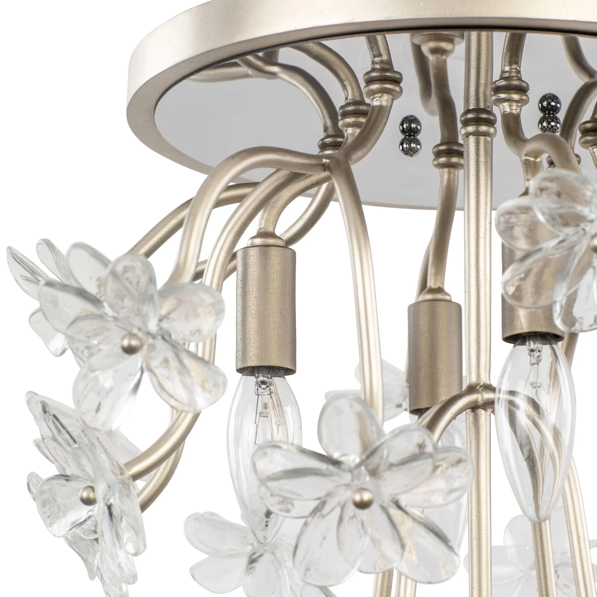 Hand-forged Recycled Steel. Handmade Recycled Glass Flowers. Available in Gold Dust with Artifact Accents or Matte Black Finishes.
