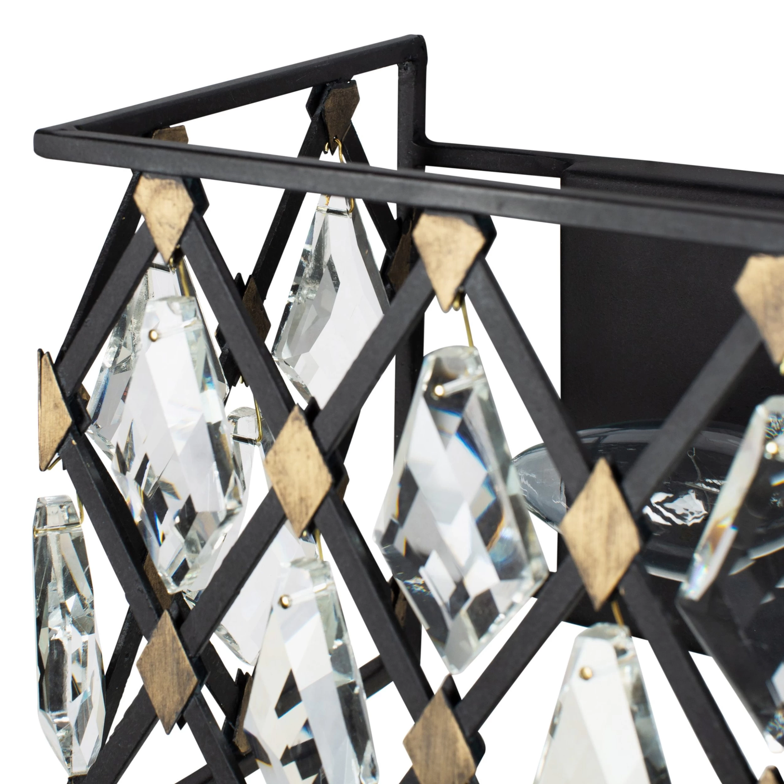 Hand Forged Recycled Steel. Double Harlequin Metal Frame. Premium Kite Shaed Optic Crystal Pendalogues.