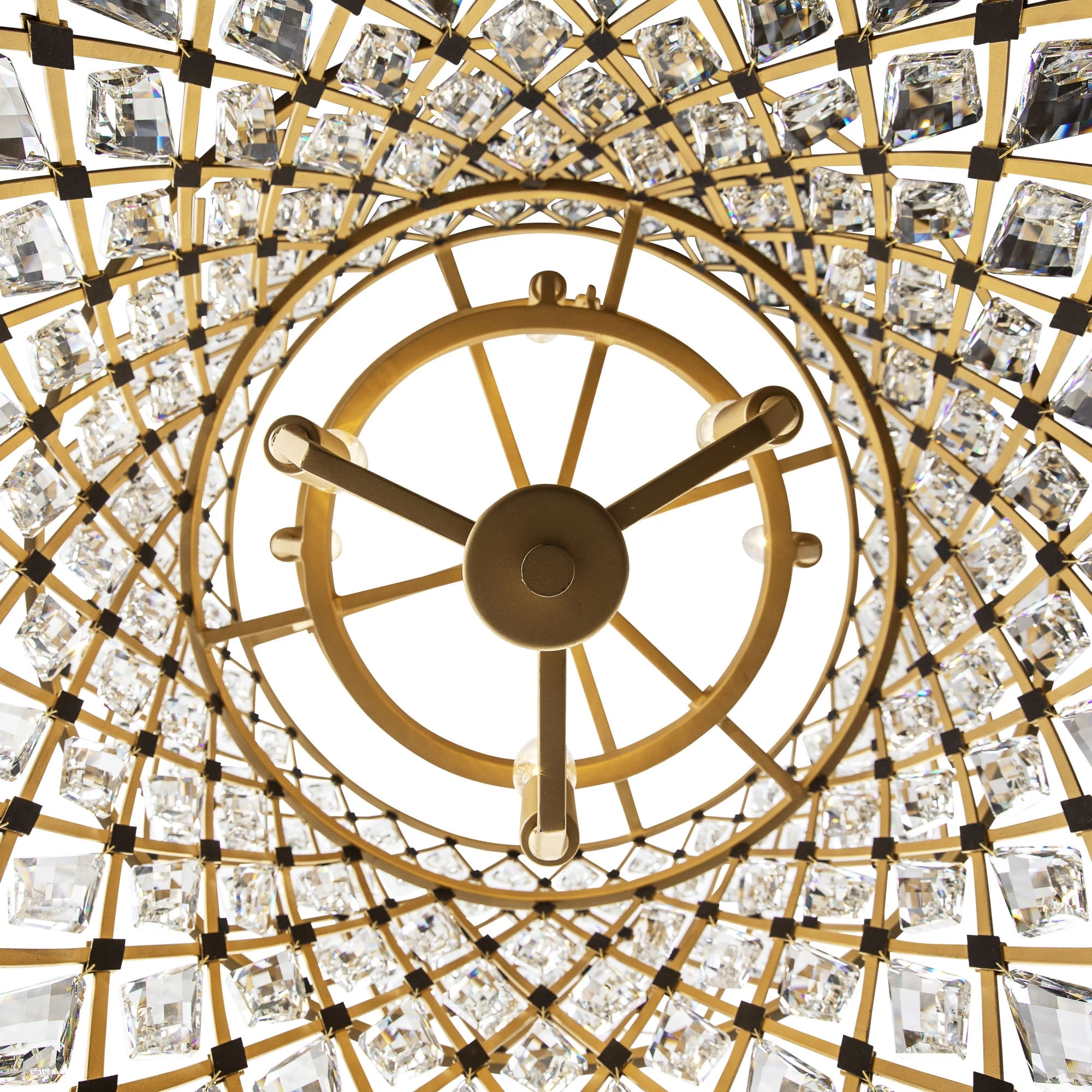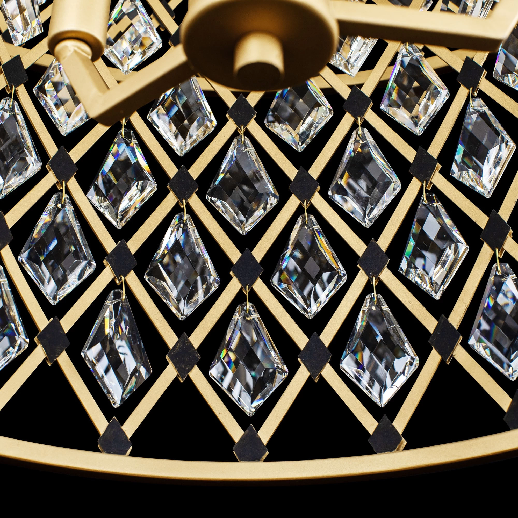 Hand Forged Recycled Steel. Double Harlequin Metal Frame. Premium Kite Shaped Optic Crystal Pendalogues.