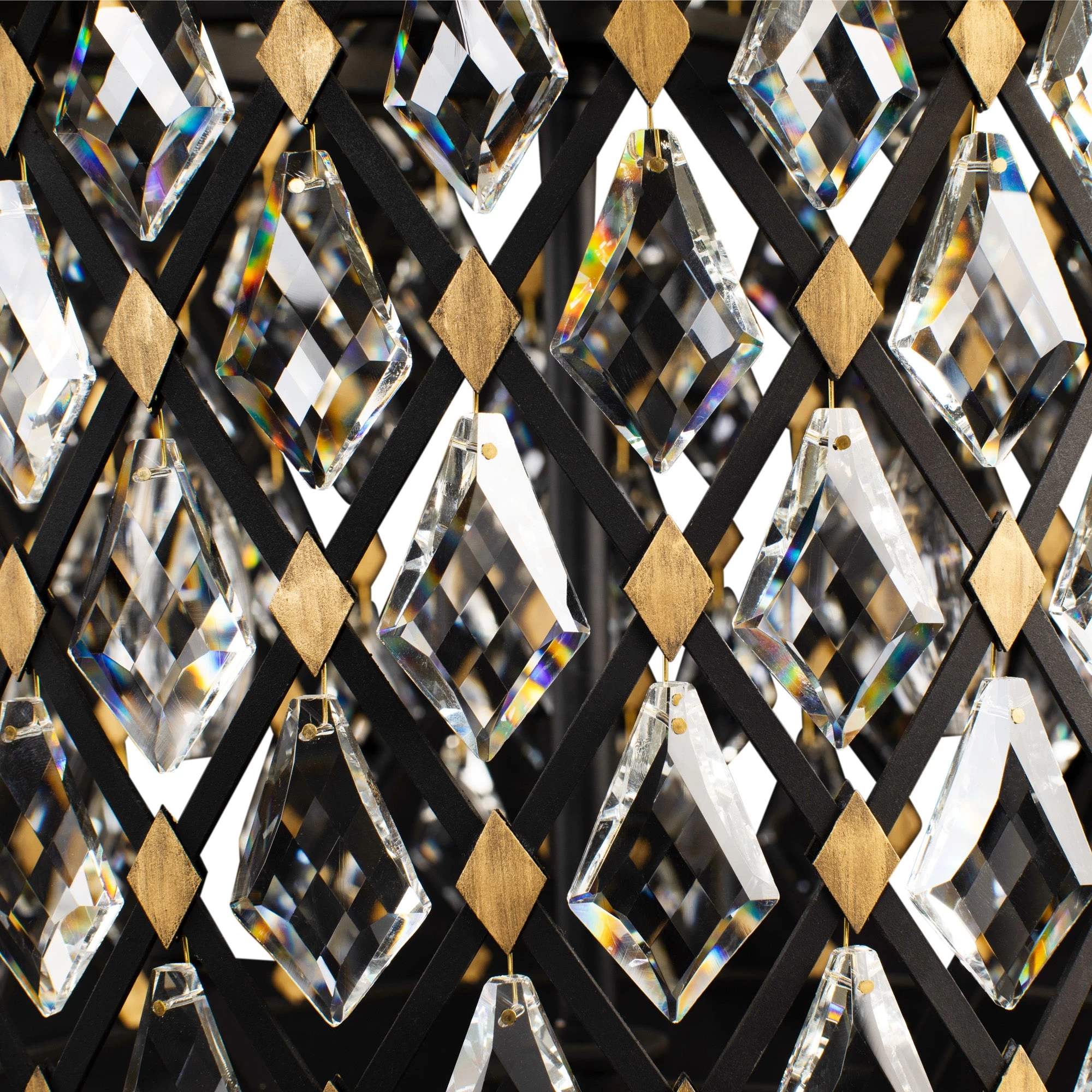Hand Forged Recycled Steel. Double Harlequin Metal Frame. Premium Kite Shaped Optic Crystal Pendalogues.
