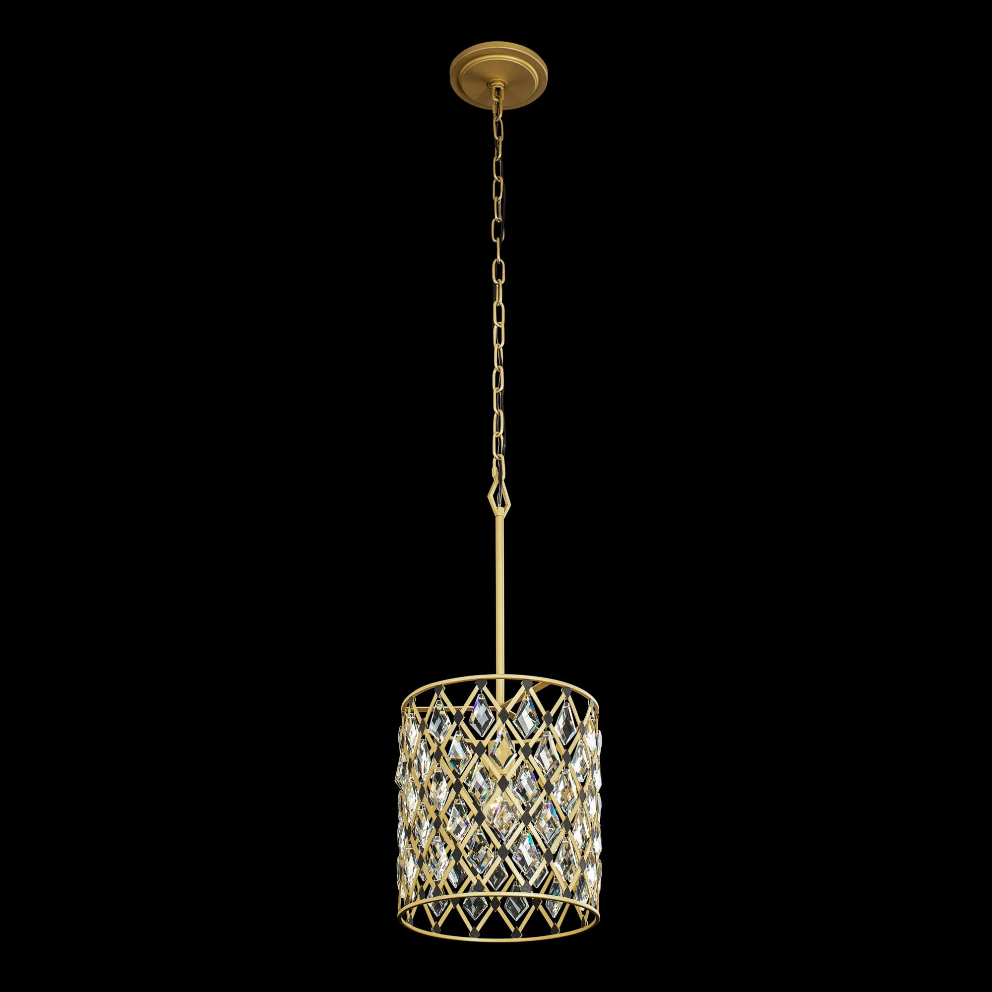 Hand Forged Recycled Steel. Double Harlequin Metal Frame. Premium Kite Shaped Optic Crystal Pendalogues.