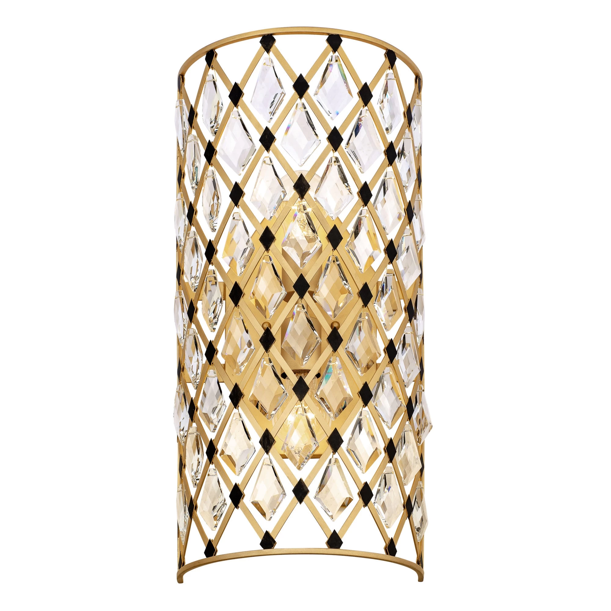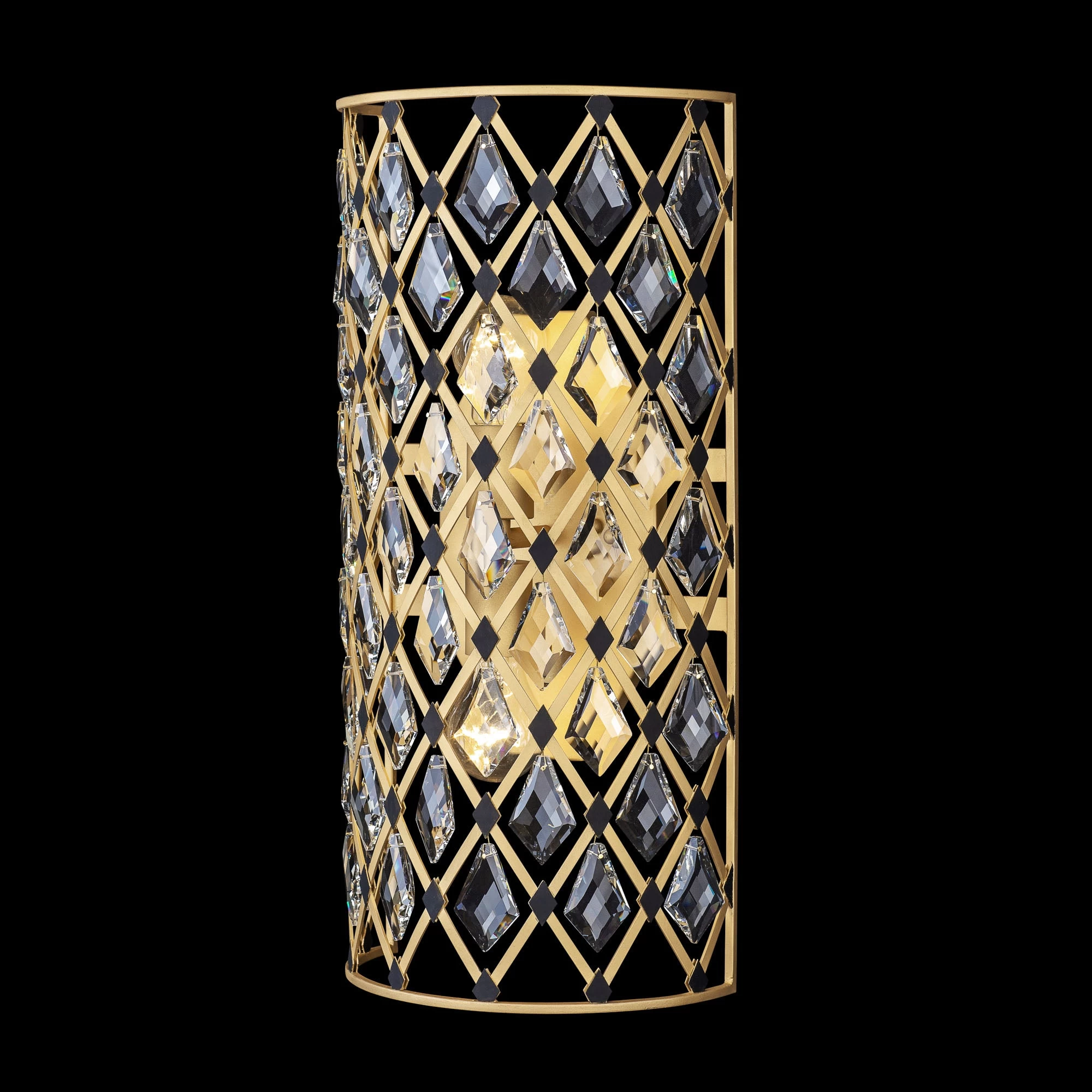 Hand Forged Recycled Steel. Double Harlequin Metal Frame. Premium Kite Shaed Optic Crystal Pendalogues.